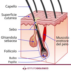 L’insieme di tutti questi elementi viene più propriamente definito follicolo pilosebaceo. Ogni follicolo pilifero ha un suo ciclo vitale ed attraverso 3 distinte fasi – Anagen, Catagen, Telogen – sviluppa la sua nascita, crescita e caduta.